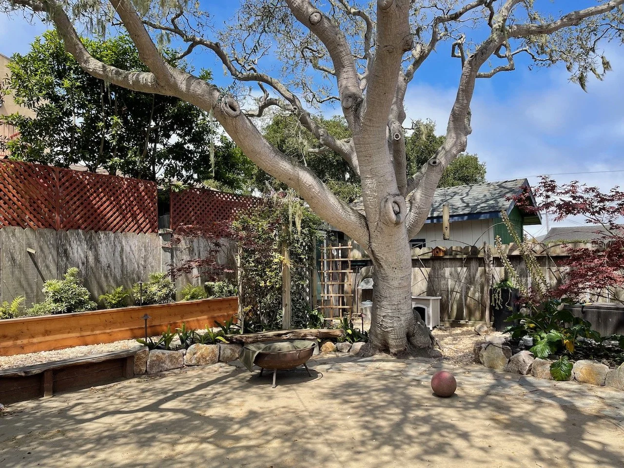 Two bedrooms, an office, one bath, a fully-equipped kitchen and a tranquil, beautiful large yard (with fire pit!) to relax and BBQ in